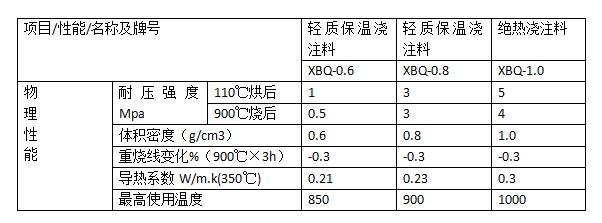 輕質(zhì)耐火(隔熱)澆注料參數(shù)