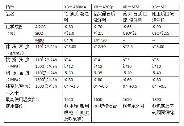 鋼包及爐外精煉澆注料參數(shù)