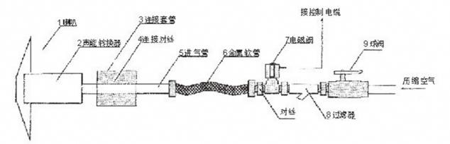 1喇叭 2聲能轉(zhuǎn)換器 3連接套管 4連接對絲 5進(jìn)氣管