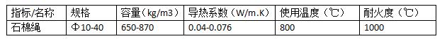 石棉繩主要性能指標