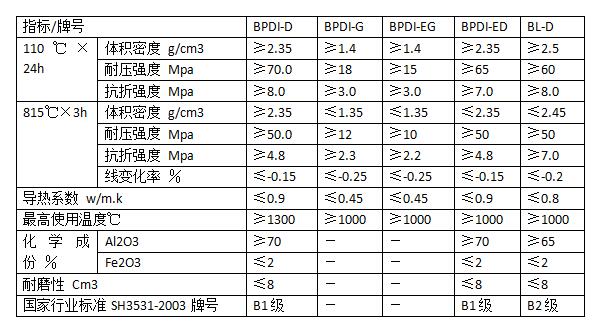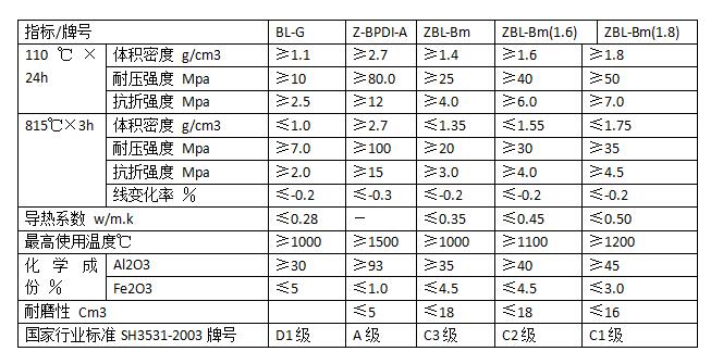 煉油裝置用耐火材料參數(shù)