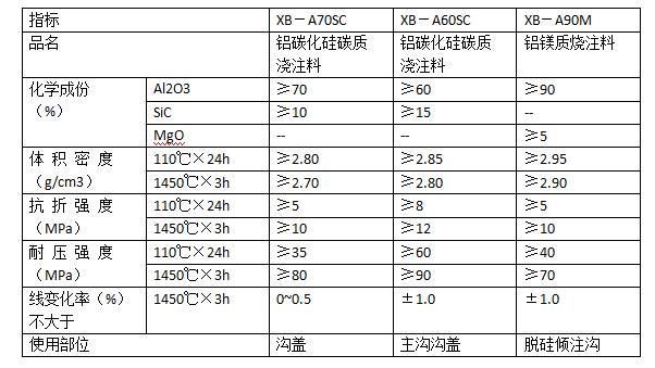 產品用途及特點: 我廠生產的新型出鐵溝澆注料,采用超細粉,復合外加劑配制而成,具有強度高、抗侵蝕、耐沖刷、不粘渣,通鐵量高,施工性能好等特點,鐵溝自流快干澆注料無需振動,烘烤時間短,烘烤時無裂紋,粘結性好等特點。