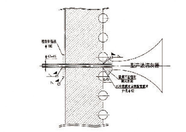 GSK350型聲波清灰器預(yù)埋套管方式安裝示意圖